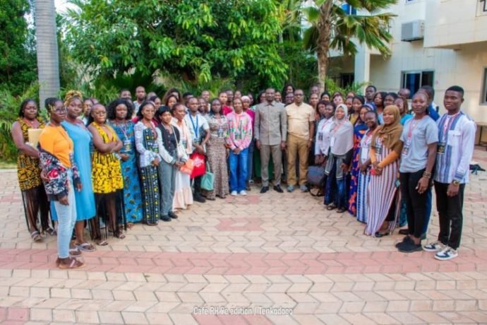 Le Ministre, Directeur de Cabinet du Président du Faso, le Capitaine Martha Céleste Anderson Dekomwin MEDAH, président de la 9e édition du Café RH a eu des échanges directs avec les étudiants-stagiaires en Ressources humaines (RH), hier vendredi 5 septembre 2025 à Tenkodogo.