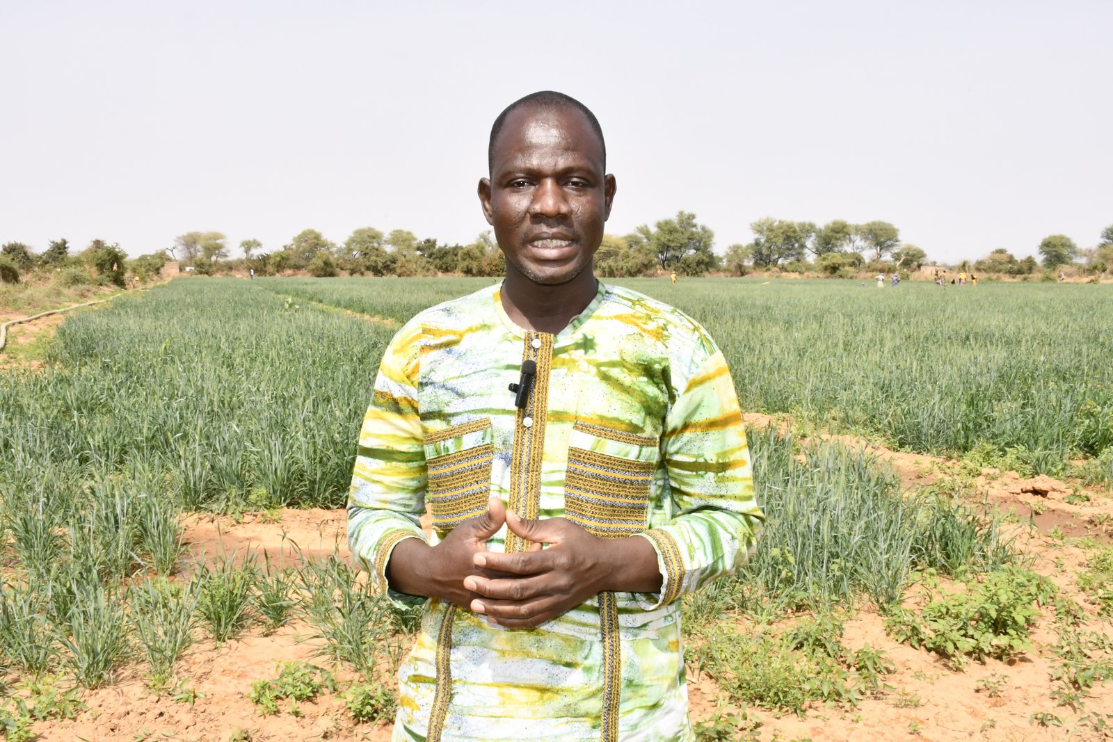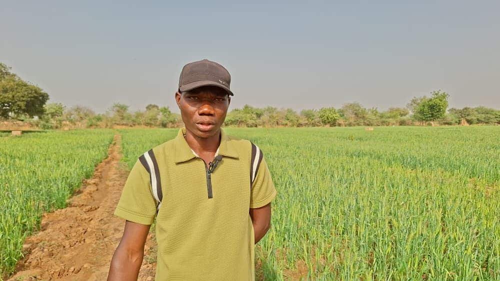 Dans un champ de 2 ha, Sayouba Sawadogo, chef VDP de la zone, a fait pousser le Triticum aestivum. Le blé affiche un excellent état de santé, caractérisé par un vert intense et une grande homogénéité.