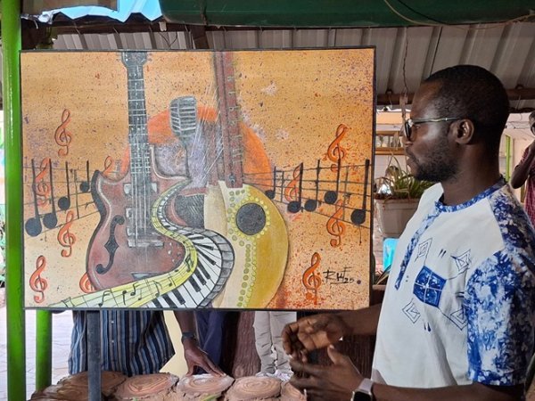 Les visiteurs ont ainsi pu découvrir des tableaux vibrants de vie, symbolisant des instruments de musique revisités. Composés d’amateurs d’art et de curieux, ils ont ainsi salué cette initiative originale. Inoussa Bélem est de la direction régionale de la communication, de la culture, des arts et du tourisme des Hauts-Bassins. À cette cérémonie, il a représenté son directeur régional. Pour lui, dans ce contexte national marqué par la crise sécuritaire, il est important de montrer que la culture reste debout, qu’elle continue de vivre et d’unir. C’est pourquoi il estime qu’il était nécessaire que la direction régionale apporte son soutien à cet évènement.