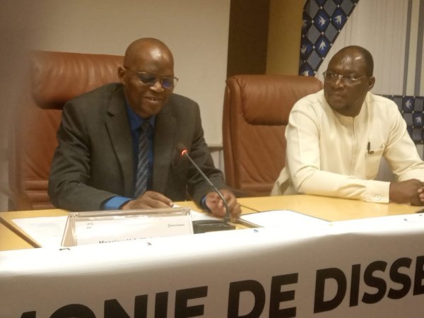 … et le représentant du ministre de l’économie et des Finances, François Xavier Bambara (au micro), avec à sa gauche, le directeur général de l’économie et de la planification, Larba Issa Kobyagda.