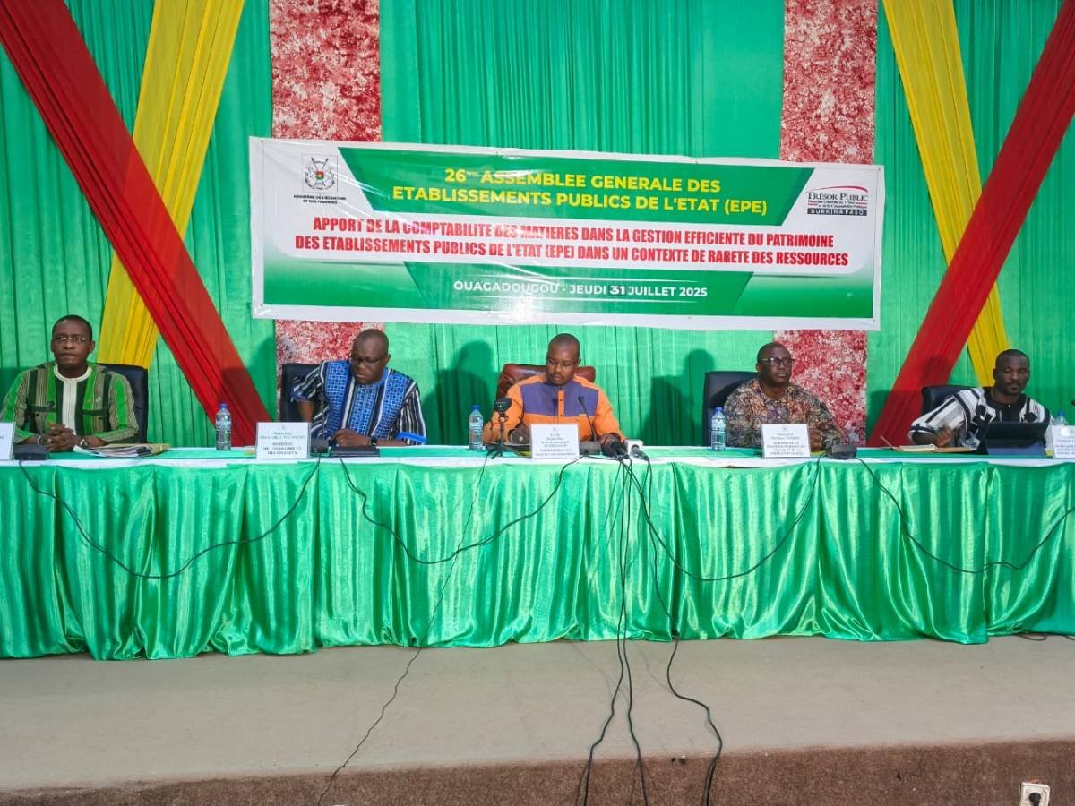 Placée sous la présidence du Premier ministre, Rimtalba Jean Emmanuel Ouédraogo, la 26e session de l’assemblée générale des Etablissements publics de l’Etat (EPE) s’est tenue le jeudi 31 juillet 2025, sur le thème : « Apport de la comptabilité des matières dans la gestion efficiente du patrimoine des Etablissements publics de l’Etat (EPE) dans un contexte de rareté des ressources » .
