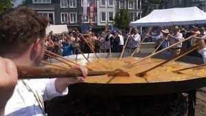 Sous l’égide de la Confrérie Mondiale des Chevaliers de l’Omelette Géante, des cuisiniers ont cassé et battu des milliers d’œufs avant de les verser dans une poêle impressionnante de quatre mètres de diamètre, amenée sur place par chariot élévateur. Des morceaux de bacon avaient été préalablement saisis, donnant une saveur particulière au plat.