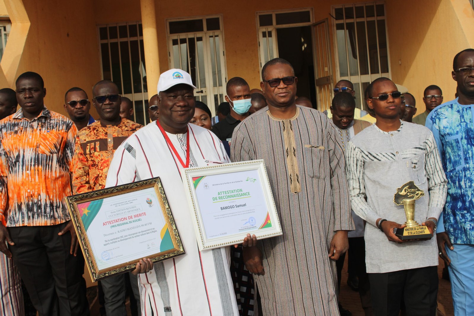 Cette troisième montée des couleurs mensuelle de l’année a été une occasion pour présenter deux lauréats du concours DEME SIRA, à savoir Samuel Bamogo, président de l’association action communautaire de développement du centre-Nord (ACD-CN) et Poussi Diandé, coordonnateur de l’association Bayiri-mébo.