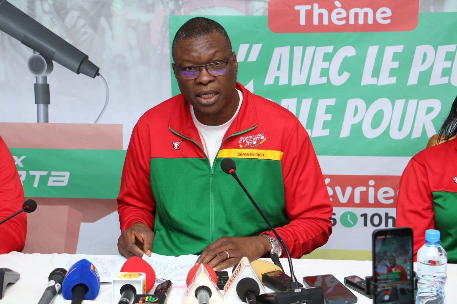 Spectacle à vivre en direct et en intégralité sur tous les canaux de diffusion du groupe média que sont la Télévision nationale, la Télévision Zénith, la Télévision RTB3, la Radio nationale et l’ensemble des plateformes digitales de la RTB, a précisé Atéridar Galip Somé. La IIe édition du Grand prix cycliste RTB a pour thème : « Avec le Peuple, la RTB pédale pour la Victoire ». Aux dires du DG Somé, elle s’inscrit dans la volonté d’offrir un programme sportif de haut niveau au public tout en montrant au reste du monde que le Burkina Faso reste debout et résolument orienté et engagé dans son combat pour le développement et l’épanouissement de ses populations. L’événement est placé sous le patronage du Premier ministre, chef du gouvernement, la présidence du ministre chargé de la Communication, le parrainage du ministre des Sports, de la Jeunesse et de l’Emploi, et le co-parrainage de El hadj Mahamadi Ouédraogo, opérateur économique, président du Patronat de la région du Nord.